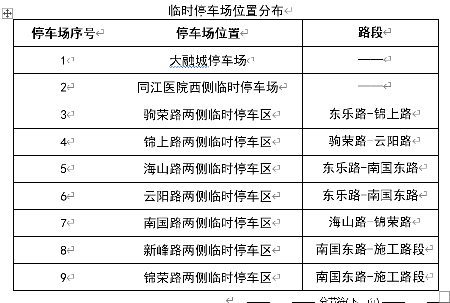 (2)开放大良街道办、体育中心临时停车场供旅游大巴临时停放,开放体育中心、钟楼公园、旧人民医院等3个临时停车场供私人小汽车游客临时停放车辆。