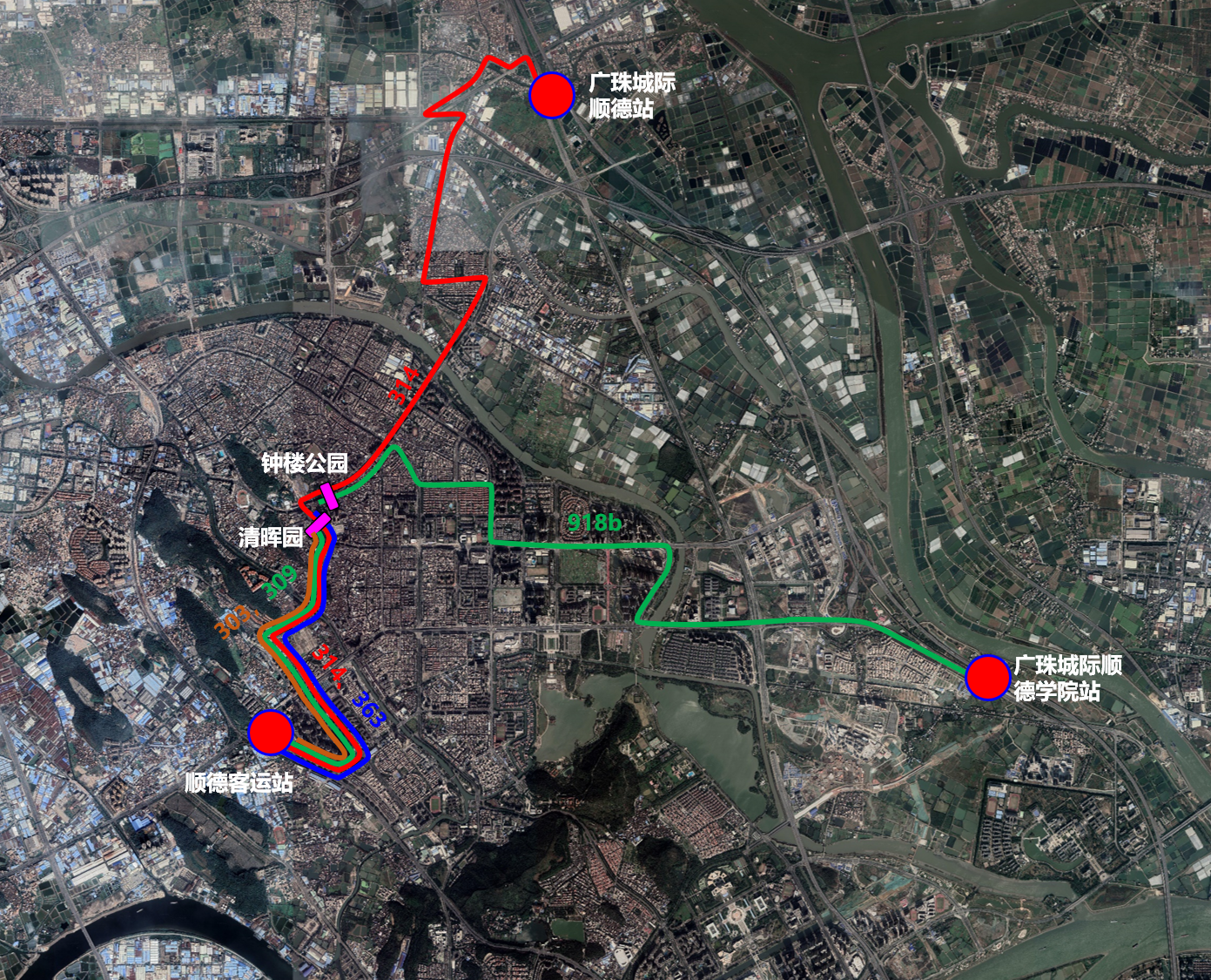 广珠城际顺德学院站:918A/B路直达清晖园公交站;