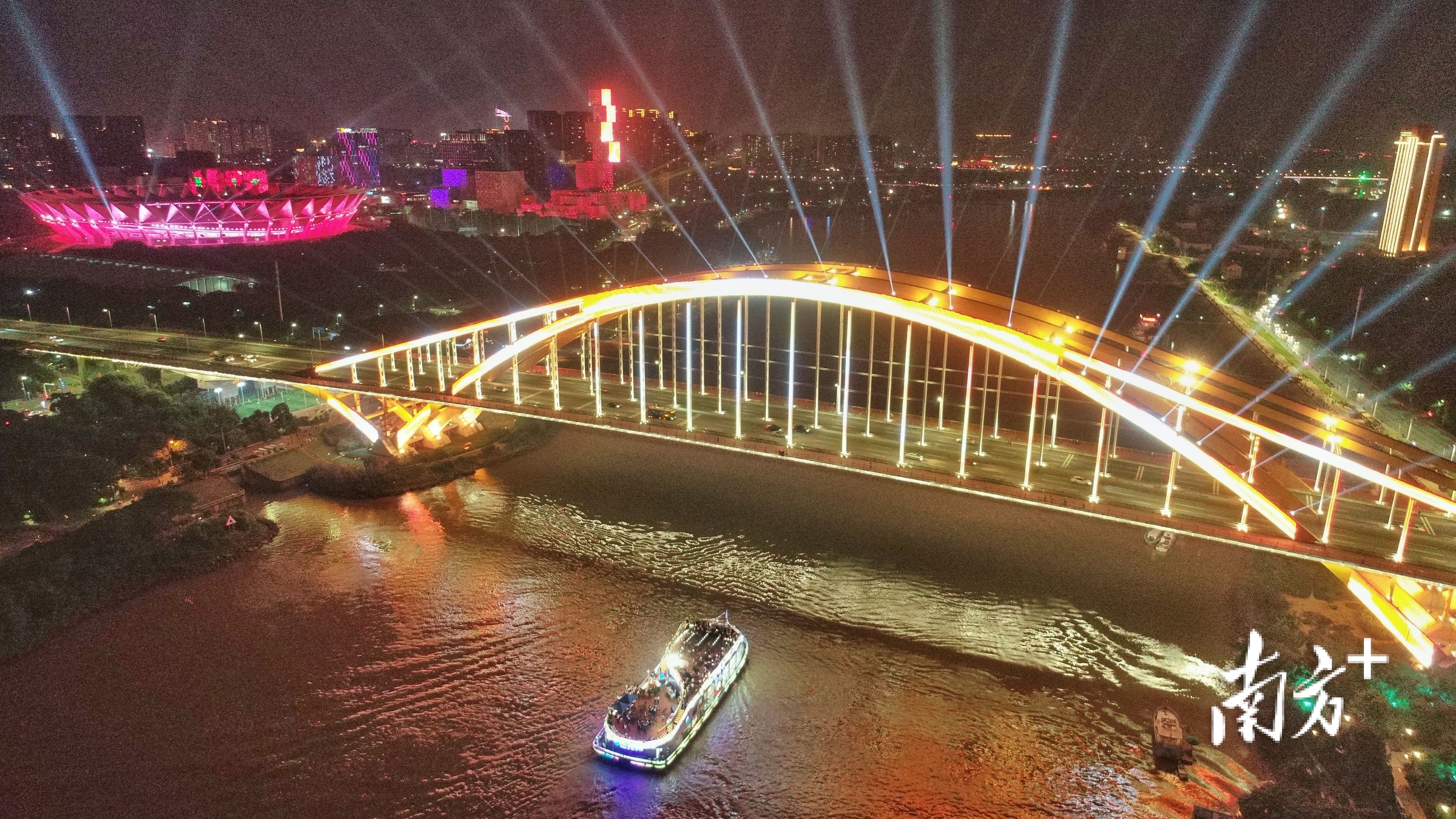 目前,佛山新城灯光亮化项目一期、二期已完成。形成以“水”“绿”“光”“影”为主要元素,以夜间游船为串联载体,以坊塔、信保广场、龙舟广场为亮点区域,沿东平水道、潭洲水道从东平隧道到陈北大桥近10公里长的一河两岸城市夜间城市景观长廊和夜间经济活力带。未来随着万里碧道和东平河水轴线项目的不断推进,一河两岸将继续升级,以更优质的城市环境助力佛山新城再出发。