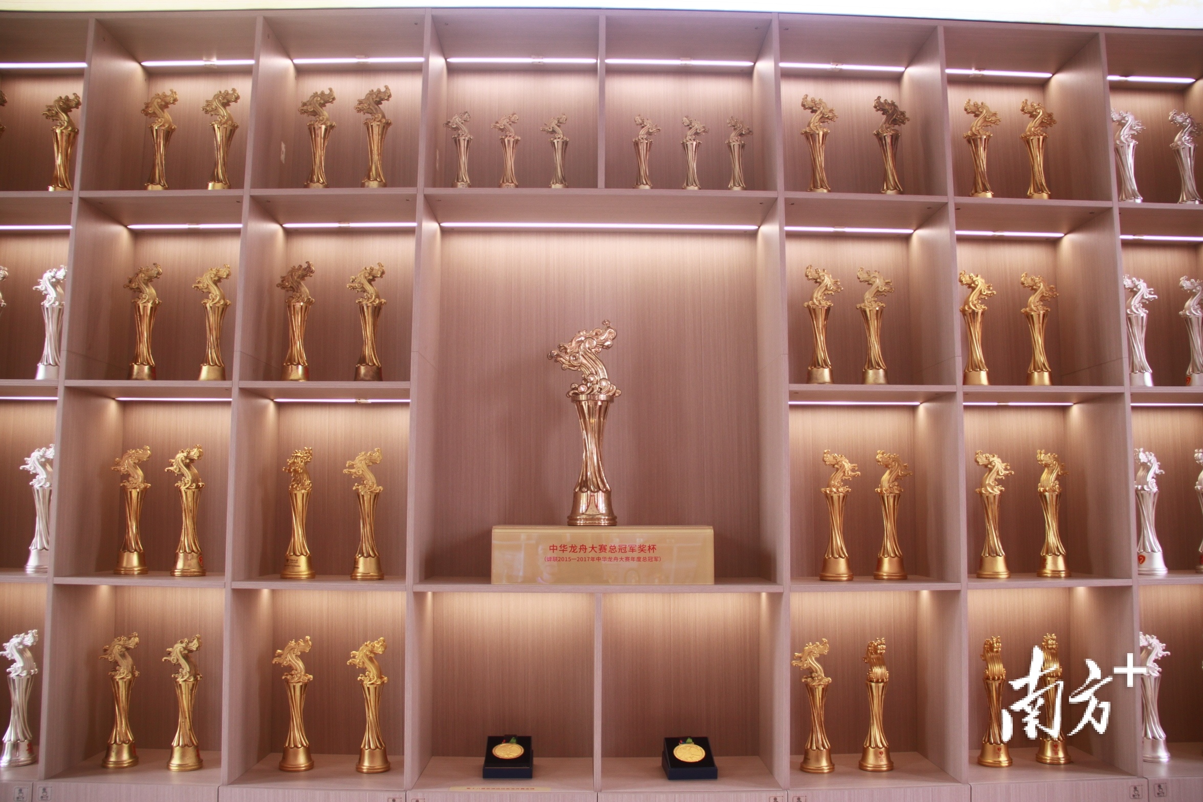 乐从龙舟俱乐部在国内外比赛中斩获的冠军奖杯。 南方+ 欧阳少伟 拍摄