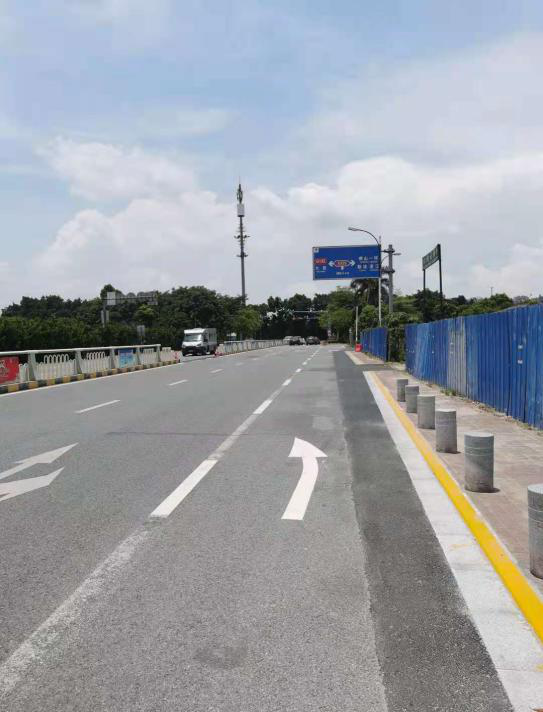 原顺德区新城路(环湖路—南国路)采取8m宽的临时保通路通行,上下学高峰期易造成交通拥堵。