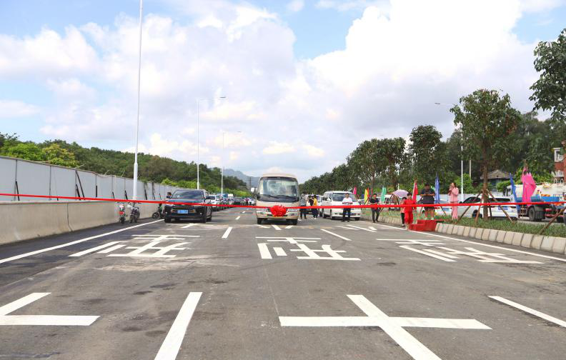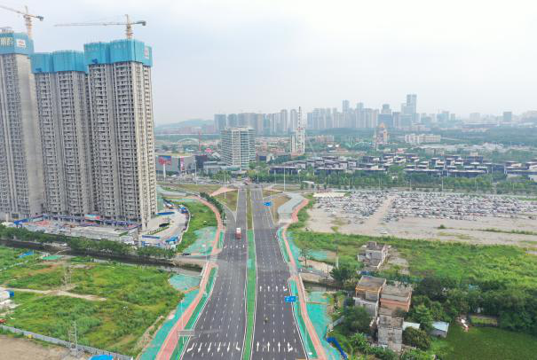 现按照永久道路断面实施,工程已完工,打破了原有新城路与欢乐大道的断头阻碍,彻底贯通了智城路、新城路、新逢沙大道、旧逢沙大道和欢乐大道,大大缓解了南方智谷和华侨城周边片区的交通压力。