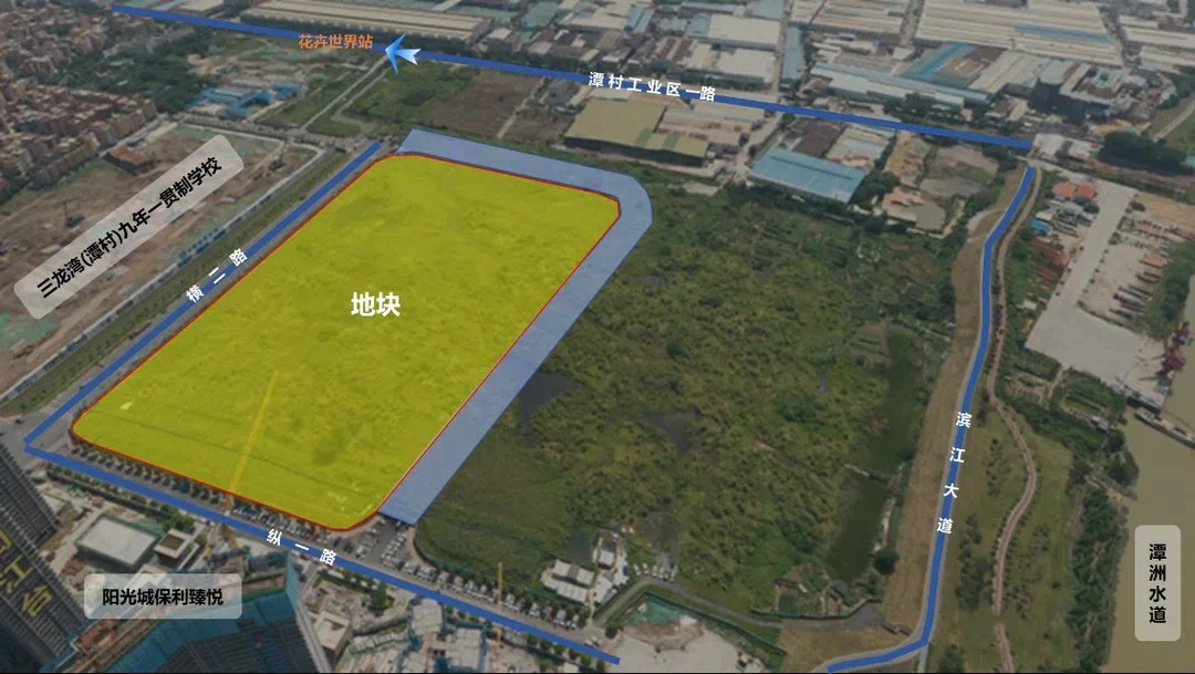 据介绍,地块为净地,周边配套三龙湾(潭村)九年一贯制学校(在建)、潭村小学、潭村医院等。地块紧邻潭洲水道,是 潭洲半岛时隔2年后推出的首宗地块,且是陈村今年唯一出让宅地。