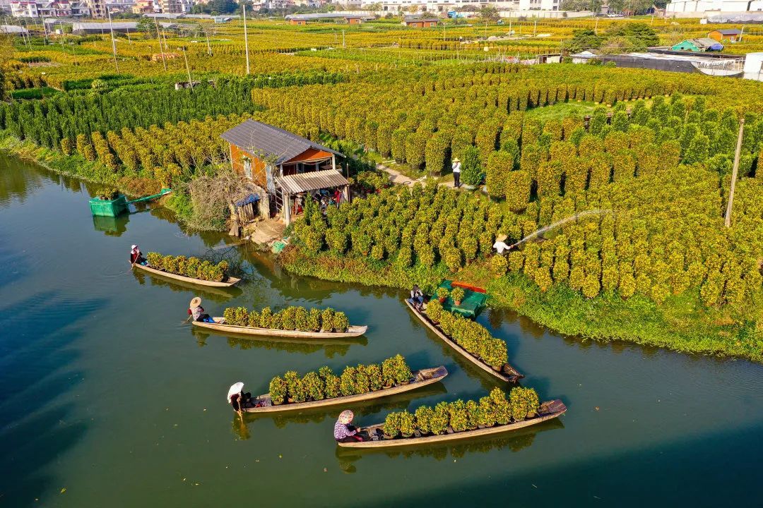 作为闻名海内外的“千年花乡”,陈村种植年桔的历史源远流长,最早可追溯到宋代初期。因河流纵横、水网密布,气候适宜,促成陈村年桔有挂果率高、果实金黄饱满的特点。而仙涌,是陈村年桔种植面积最大、数量最多的村居,村民主要从事花卉桔果种植,形成“户以花为业,村以花出名”的花村。