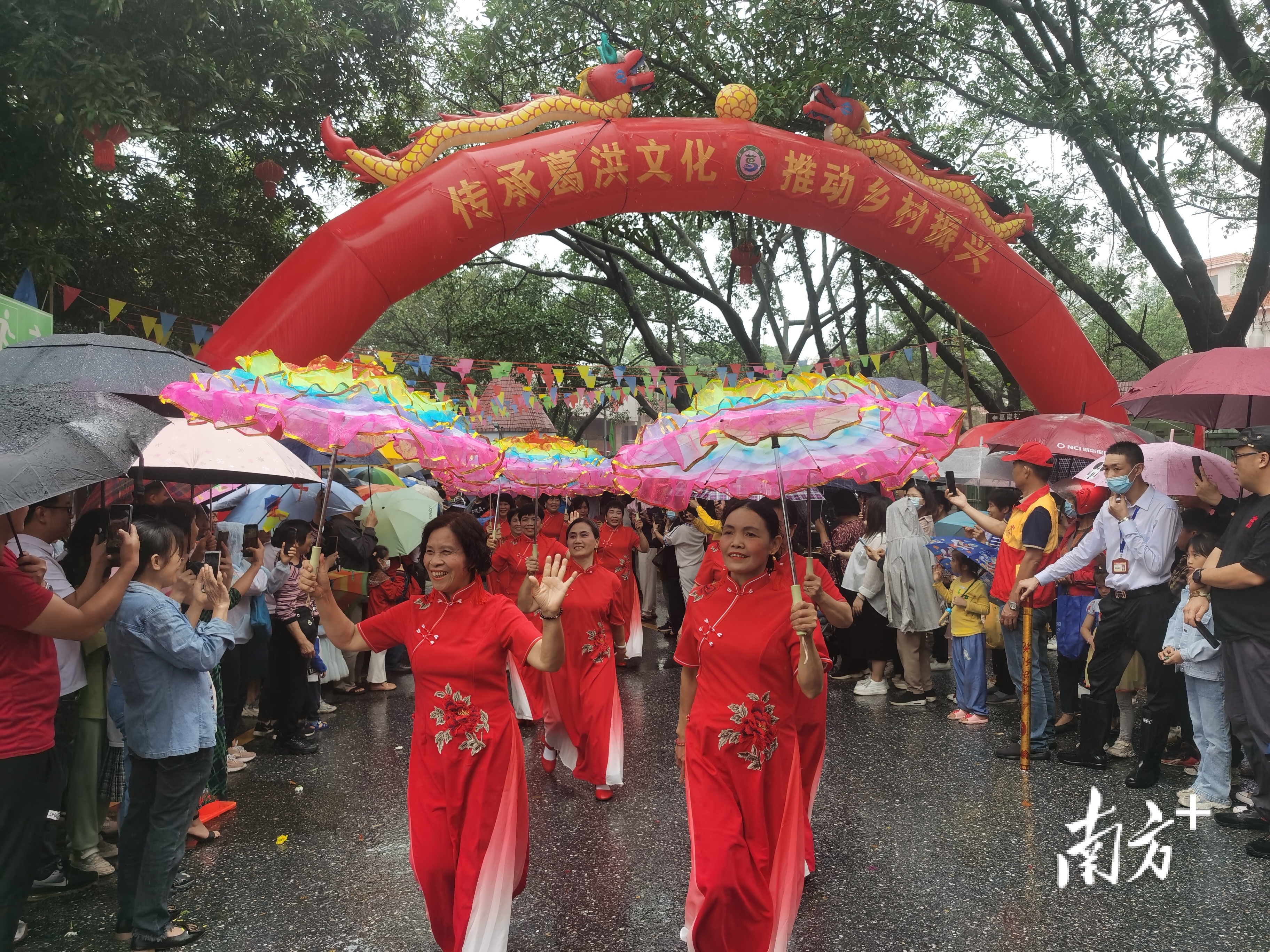 松柏起舞方阵展现了村民们的喜庆心情。 南方+ 欧阳少伟 拍摄
