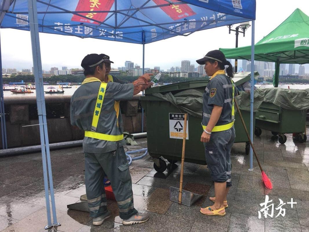 “游了十几年,第一次是伴着雨水游过母亲河,河水质量很好,这让我很高兴。”其实杨穗不仅是横渡珠江活动的老熟人,也是一名特殊的参与者,他每年都会自带垃圾袋在水中捡垃圾,但这一次他“颗粒无收”。“今年珠江水质、味道好很多。这次计算游下来是25分钟,保持着很舒服的速度完成。”
