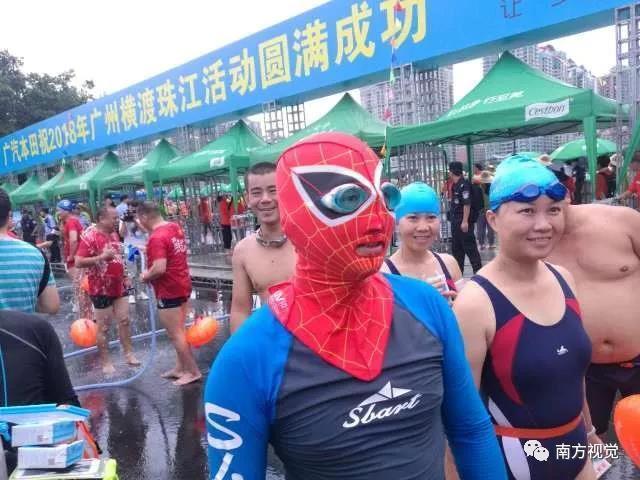 谢伟斌是河源人,这一次专程从河源来到广州参加珠江横渡,更特别的是他还专门戴着蜘蛛侠头套参加,在方队之中特别显眼。“因为之前我已经连续两次申请报名参加横渡珠江,但是都临时无法参加,这一次第一次如愿以偿,所以非常激动,别出心裁地想用实际行动表现出心情。”前不久他去电影院看到了漫画角色蜘蛛侠,空中自由摆荡的蜘蛛侠让他突发奇想,戴着蜘蛛侠的头套在水中畅游。