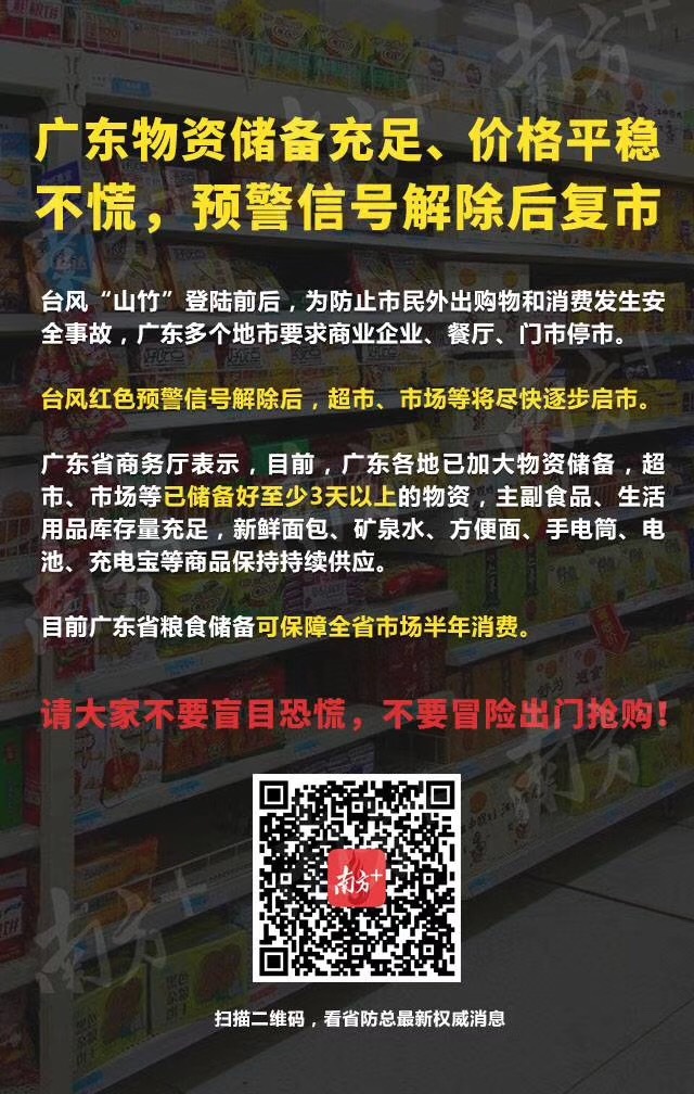 省防总消息,截至16日14时,广东全省累计共转移人员236万人,启用避护场所17955个,关停景区620个,关停在建工地29497个,渔船回港47476艘,渔排作业人员已上岸3万多人。