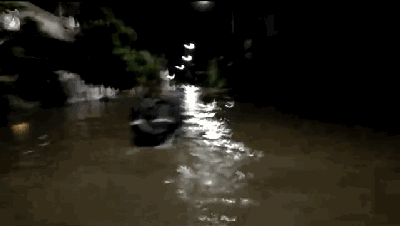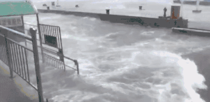 “山竹”登陆,珠江水位猛涨,广州市区滨江部分路段江水倒灌。