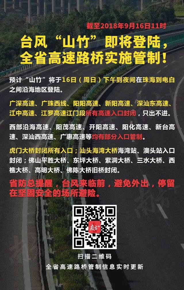 高速公路方面,共计93个高速公路路段实施部分入口或全线封闭。国、省道方面,珠海、江门、中山市所有26条国、省道已全线禁行。其中珠海、中山、江门、阳江、广州、佛山、肇庆涉及的40座重点桥梁已全线封闭。