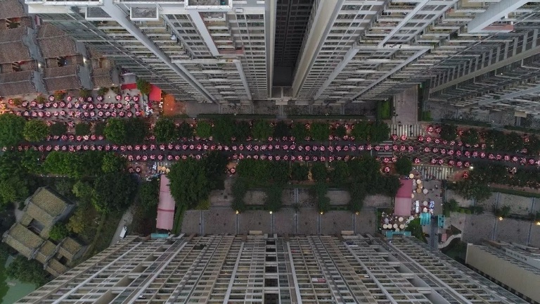飞上天都看不完绵延的桌席: