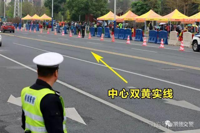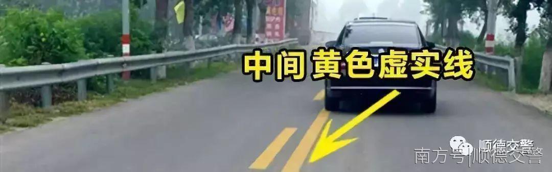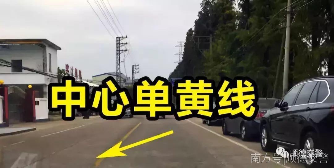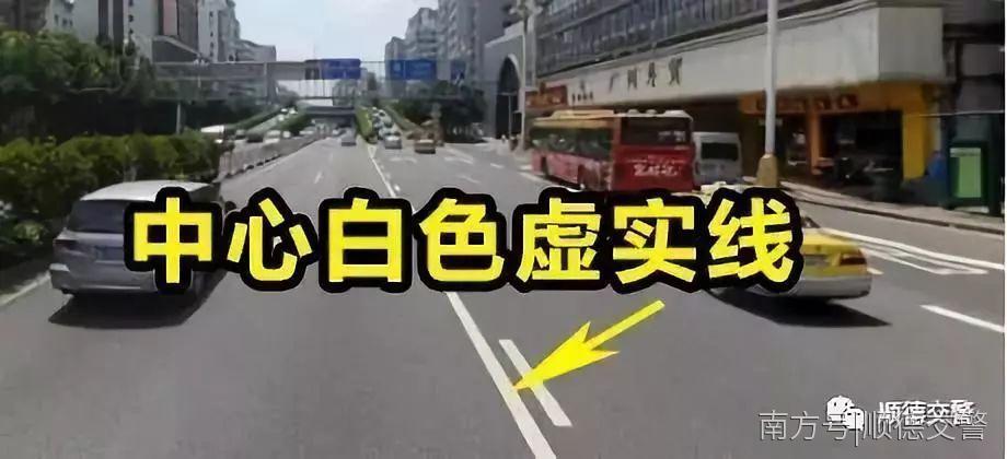中心黄色虚实线,实线一侧是禁止车辆越线超车或转弯,虚线一侧是准许车辆越线超车或向左转弯。