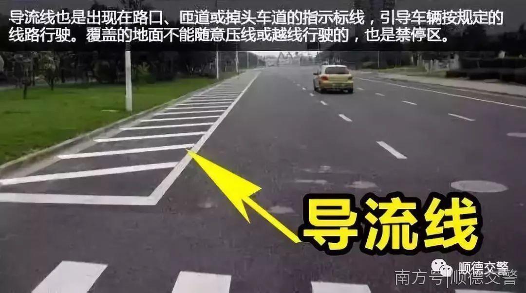 导流线表示车辆必须按导流线行驶在相应的车道,不得压线或越线行驶,更不能停车。