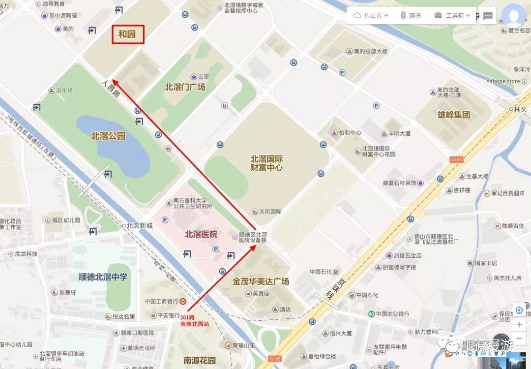自驾:导航“顺德北滘和园”