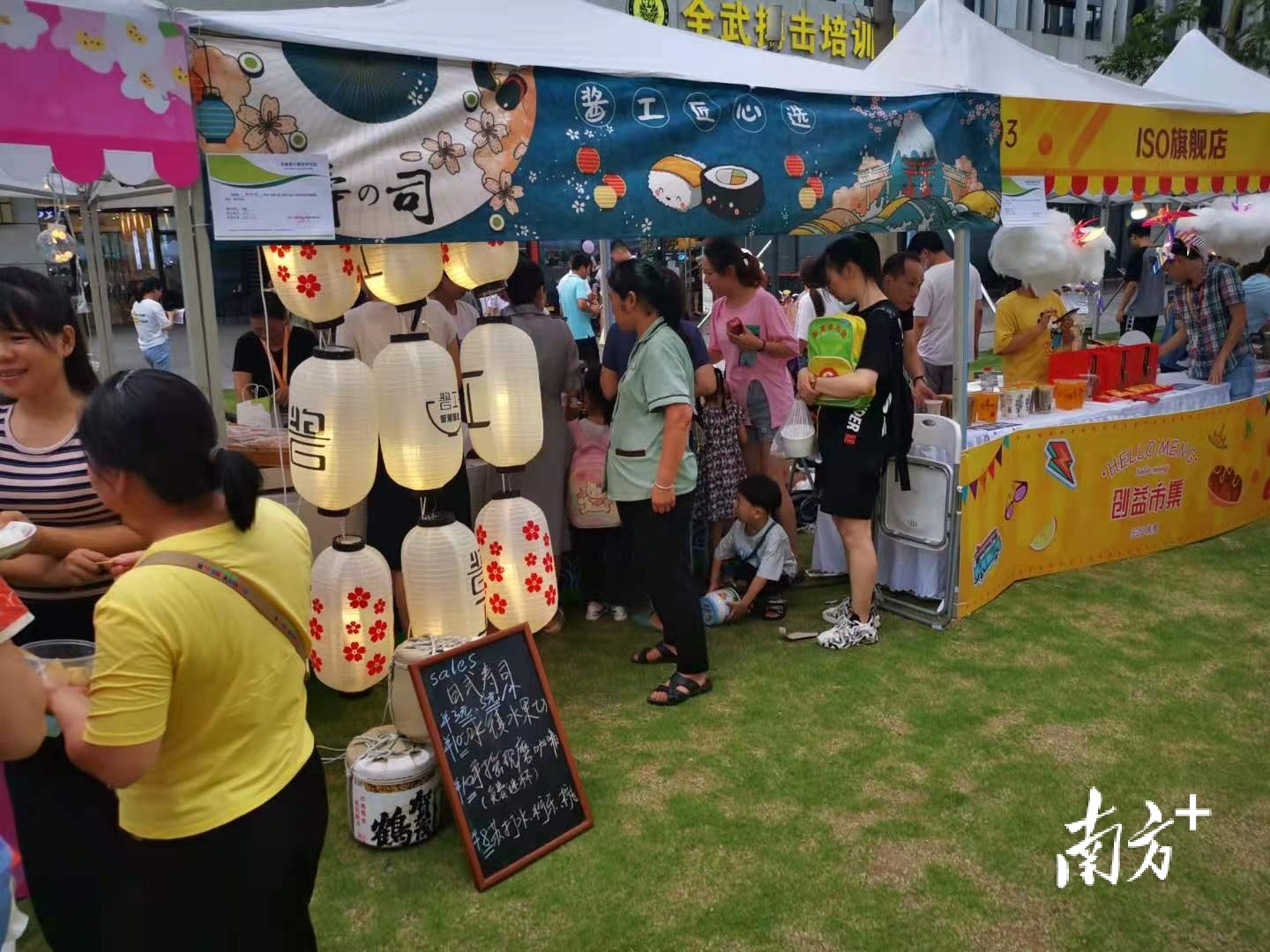 启动仪式结束后,正值夜幕降临,创益市集上人潮涌动,放学的、放工的人们汇聚到草地上,不仅可以买到各类好吃的好喝的,还能“淘”到不少精美的小玩意,现场还有不少游戏体验区和手工坊,大人和孩子都大呼“太好玩”!