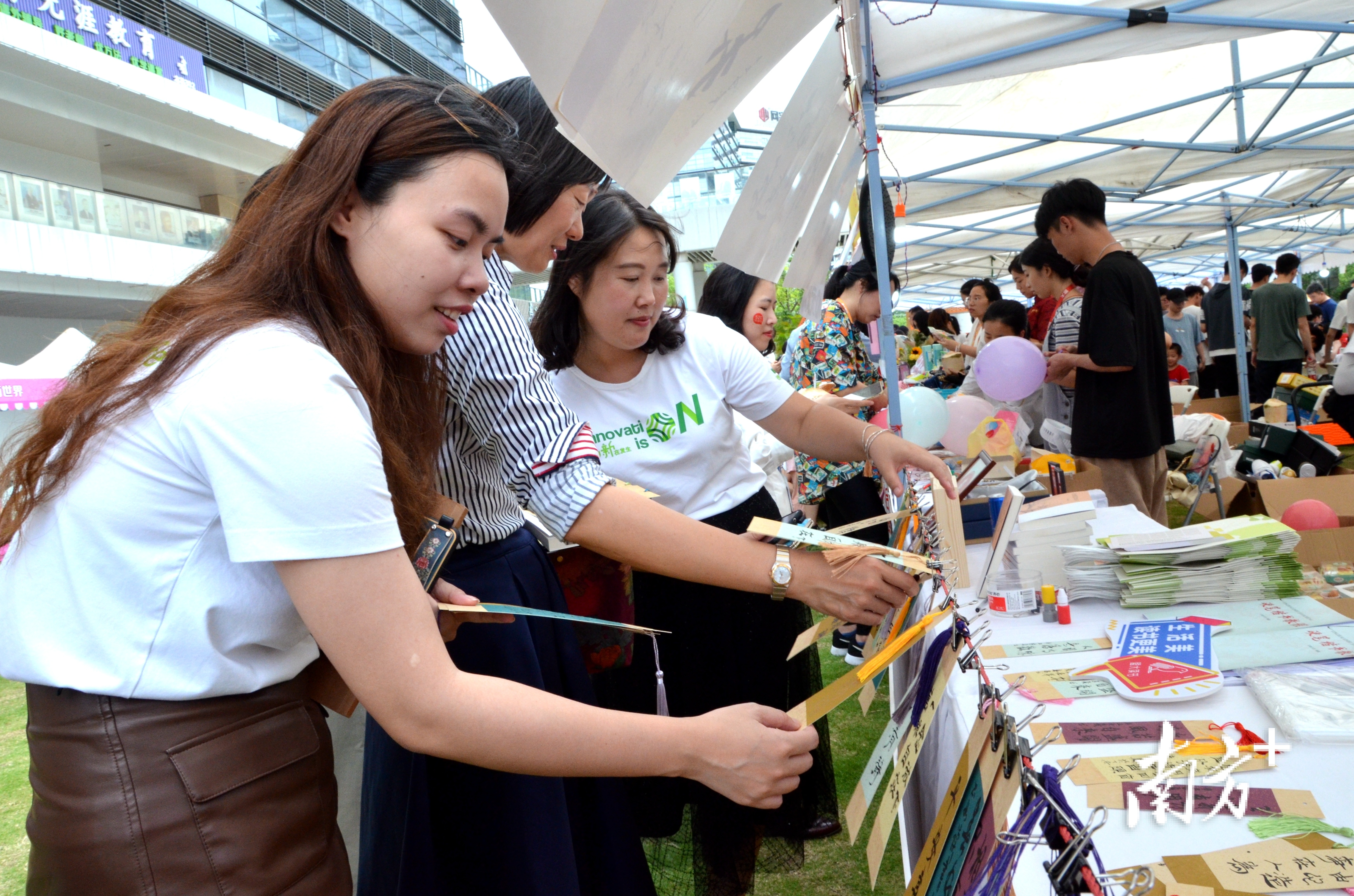 笔者在现场看到,有不少“爱心摊位”是该企业员工通过“卖艺”和“卖才华”展现,有自制的手工编织品,有亲手做的剪纸,有自己的摄影作品和画作,更有自己写的书现场签售,还有定制书签等。创意与爱心满分的同时,也是诚意满满。