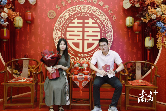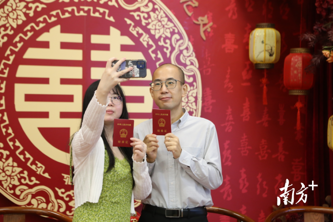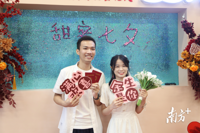 选择在传统佳节领证的郑先生和戴女士早已选定在这个日子携手走进婚姻殿堂。他们两人都十分热爱传统文化,郑先生说:“可能其他年轻朋友更倾向于选择‘2·14’‘5·20’登记,我们感觉这就像网络的一阵风,反而七夕这样的传统节日更有意义。”