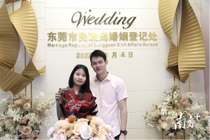 当天东莞市婚姻登记管理中心为每位领证的新人赠送一本“婚姻爱情宝典”,其中印有结婚誓言,新人可以回到家里在家人的见证下进行宣誓,用满满仪式感记录人生这幸福的特殊节点。工作人员介绍说,希望通过这样的一个手册,更好地让新人认识新婚夫妻如何度过磨合期、适应角色转变,认识婚姻赋予他们的责任,学习如何有效沟通,了解婚姻中可能产生的问题及应对策略等。