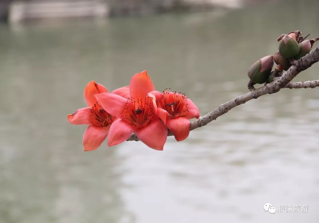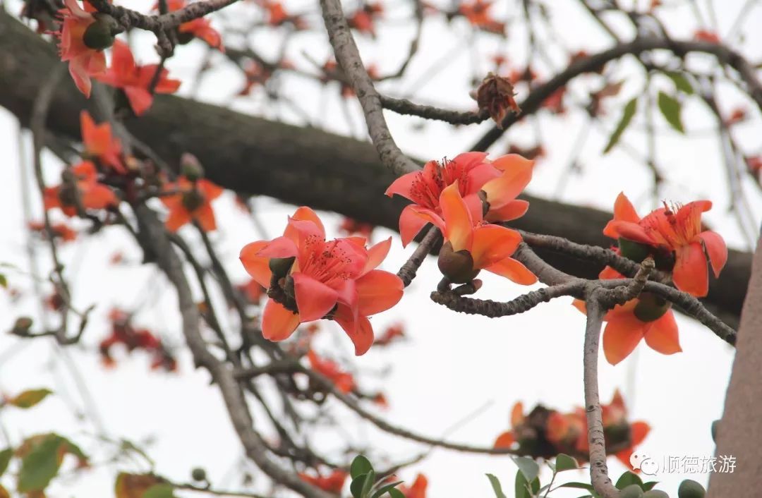 乍暖还寒的2月,在勒流勒北渡口,一棵棵高大挺拔的木棉树开得正盛,朵朵“红色火焰”缀满枝丫,仿佛预示着新的一年红红火火。