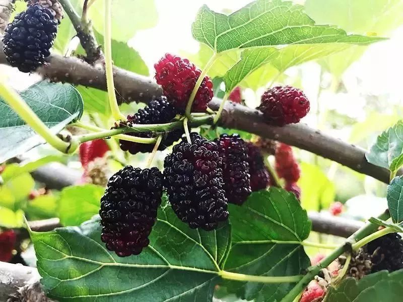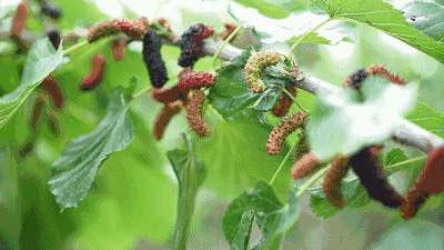 红色、紫色、紫黑色,桑果已逐渐进入成熟期,尝上一口尽是春日的酸甜味。
