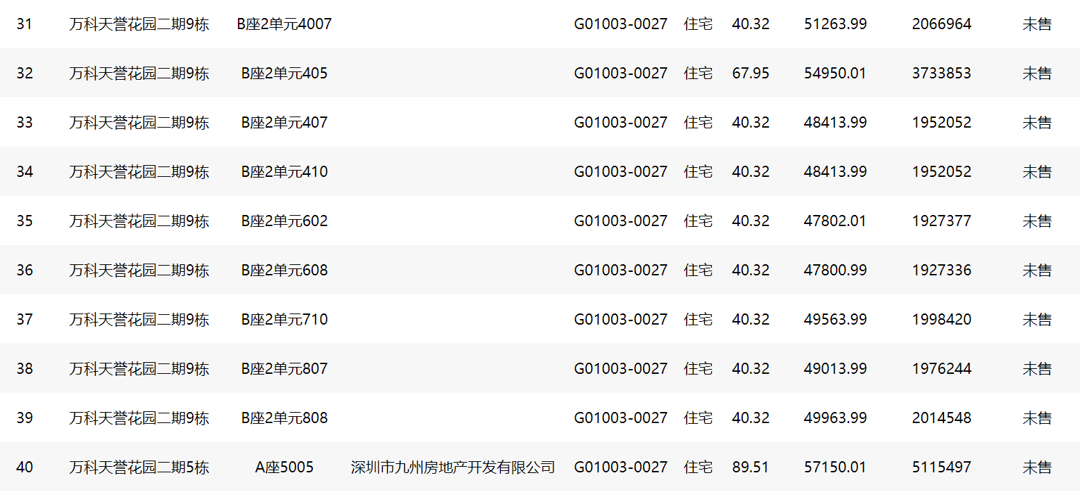 深圳市房地产信息平台显示,位于龙岗中心城的万科天誉备案40套住宅,建筑面积约40m²-152m²,单价4.78万/m²起,总价区间为约192.7万-728.2万。