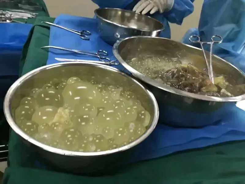 湖南的铲屎官王女士因为左上腹疼痛到医院检查,结果被查出患有肝包虫囊肿。肝包虫在她的肝脏上“筑窝”了,手术切出来的肝包虫囊液竟然有2斤!