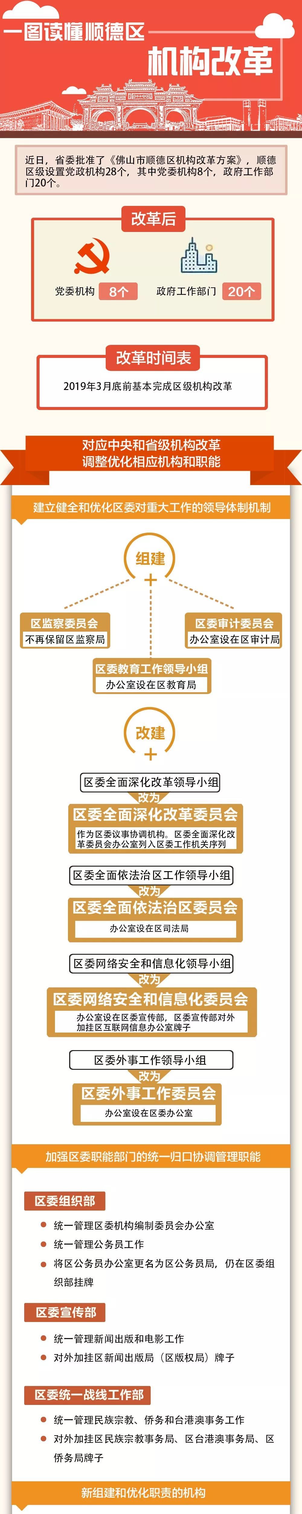 近日,佛山市和五区机构改革方案相继出炉,小编作为顺德区的一份子,当然要第一时间为大家收集《顺德区机构改革方案》的“一图读懂”,快动手点击分享和收藏喔!