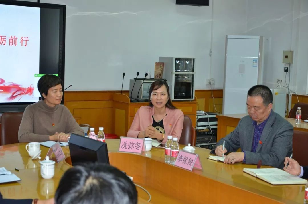 2018年12月28日上午,顺德区教育局局长闵乐萍、顺德区教育局副局长冼弥冬、龙江镇教育局局长欧阳伯洪一行三人参加中共佛山市顺德区龙江职业技术学校党总支部党员教育座谈民主生活会。