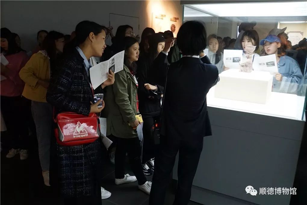 顺职院的一众志愿讲解员在认真聆听博物馆讲解员对顺德历史的精彩讲述