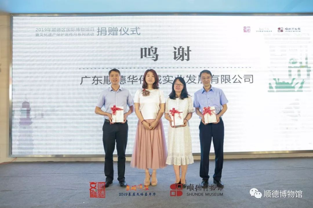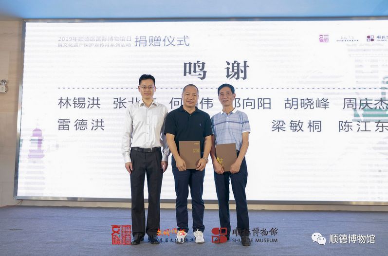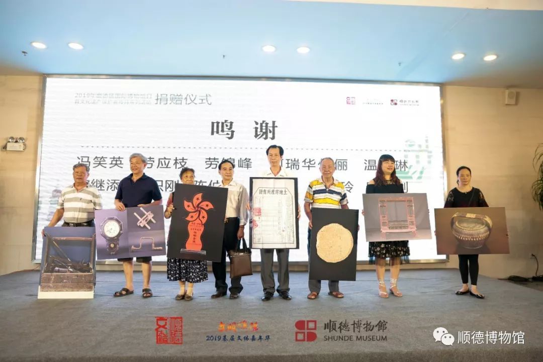 冯笑英女士、 劳应枝先生、劳锦峰先生、何瑞华伉俪、温汝琳先生、欧继添先生、陈炽刚先生、祥新星粤剧团代表苏艳玲女士、欧阳剑团长等一行为顺德区博物馆捐赠各自的珍藏