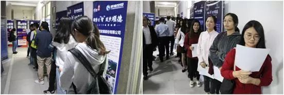▲宣讲会结束后的现场面试环节,同学们排起长队,认真备面。