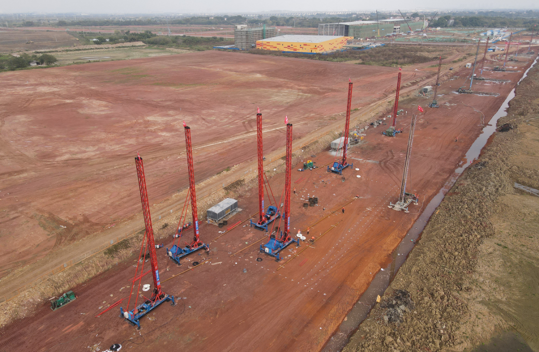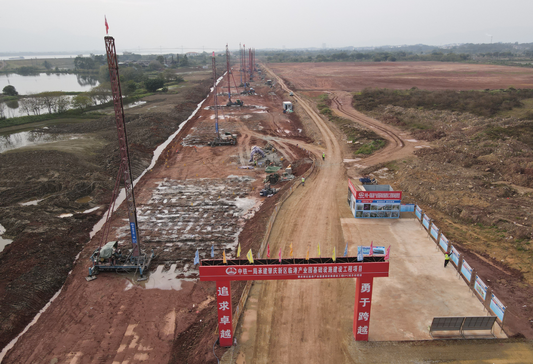 肇庆新区临港产业园基础设施建设工程(一期)由三部分组成,分别为新建市政道路及配套工程、拓宽路基及新建污水管道改涌工程,共计十一段市政道路,路线总长度为12.8km。目前项目临江大道软基处理已完成80%,将在3月底全部施工完成。