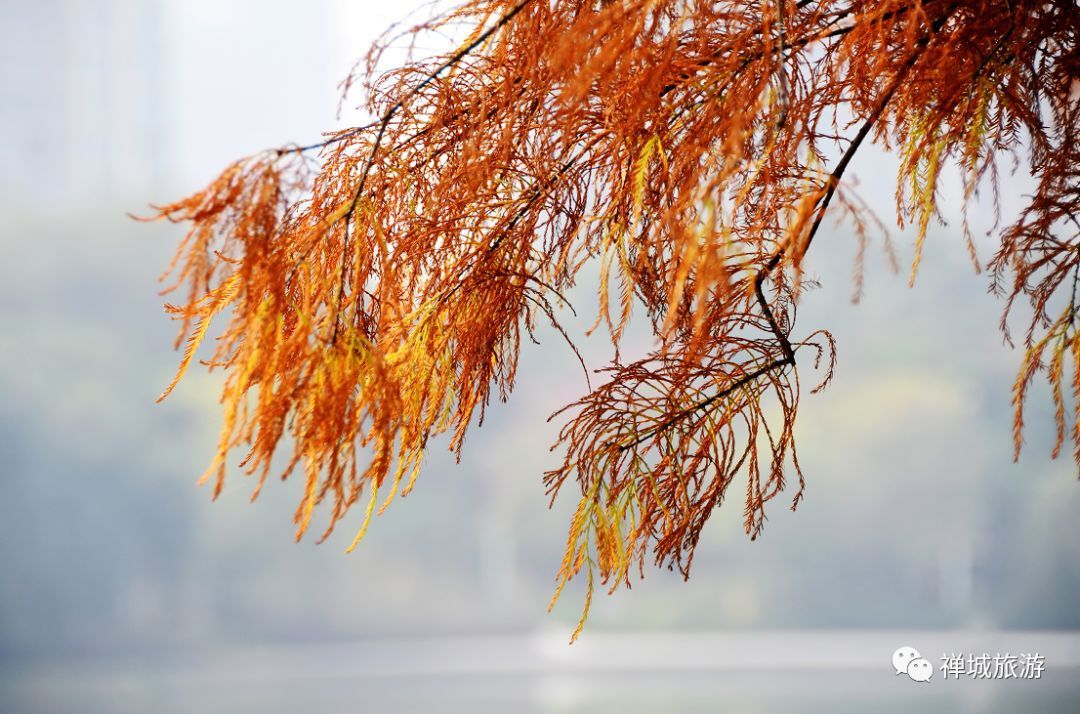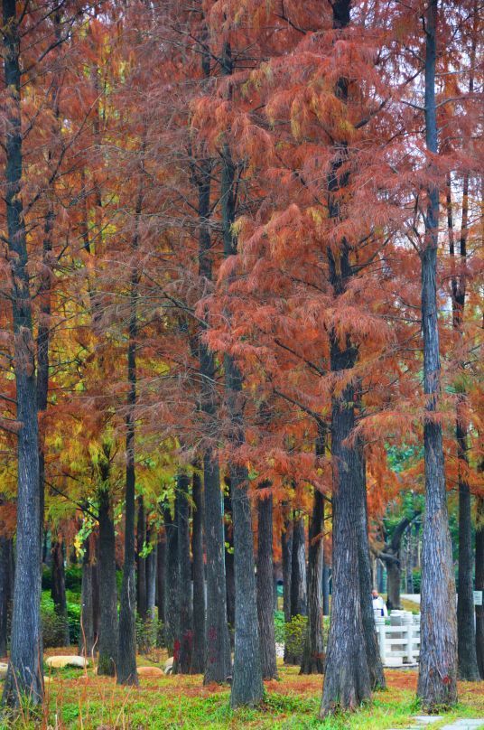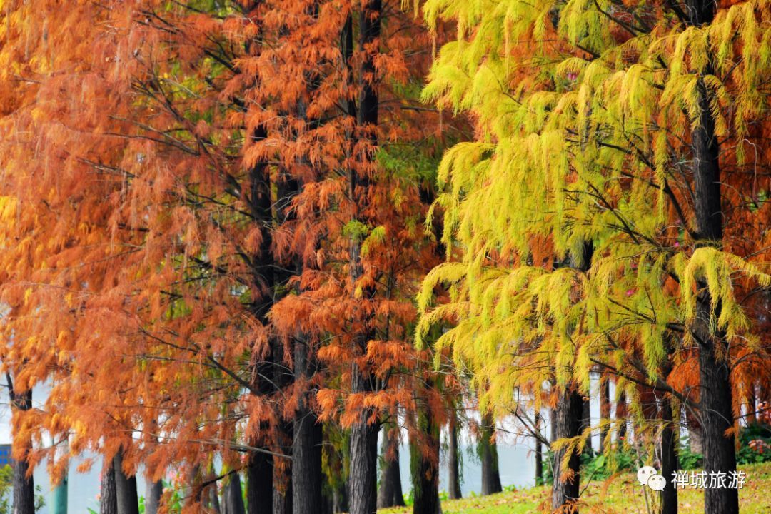 赏杉正当时,禅城亚艺公园变成了一片橘红色的童话世界。