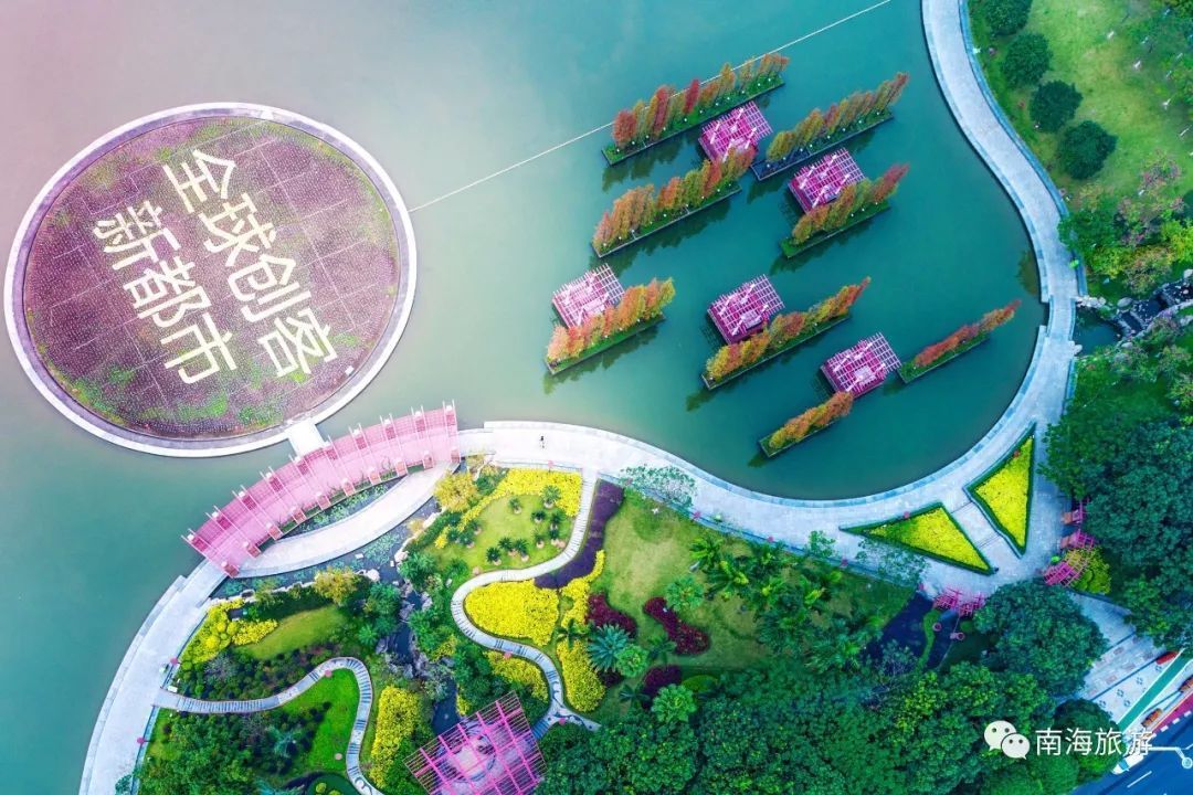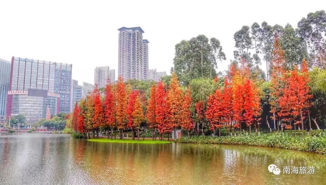 冬日里的千灯湖被水杉妆点得色彩缤纷,细看其中还有星星点点的凉亭坐落在叠翠流金之内,人游其中恍如置身童话里。