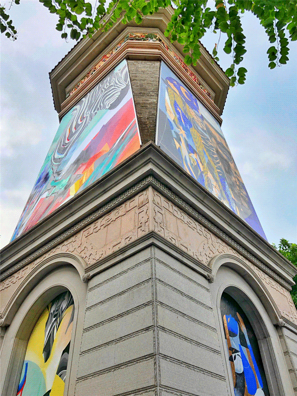 今年,岭南天地携手法国驻广州总领事馆、世彩文化及丸工作室将“中法文化之春艺术节”的视觉交流活动引入佛山,邀请中国知名涂鸦艺术家WHYYY、法国知名涂鸦艺术家Kazy-K,在岭南天地的标志性建筑钟楼,带来一场“潮动西东”的街头艺术——“墙上的对画”大型涂鸦创作。