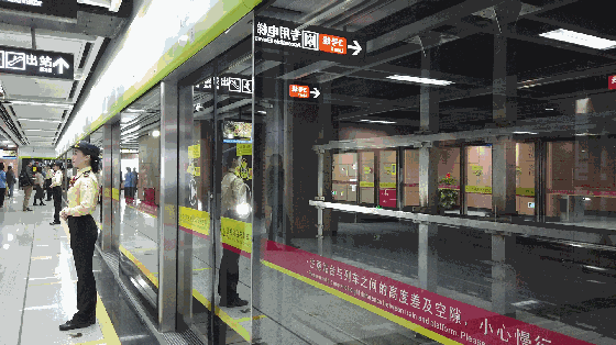 广佛地铁燕岗-沥滘段开通首日,列车驶入站台 。
