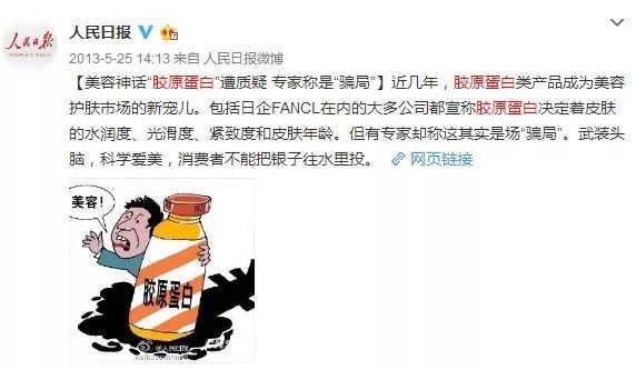 外敷此类护肤品根本难以达到补充皮肤胶原蛋白的目的,因此,FDA 才对不负责任的宣传发出了警告。《人民日报》微博也曾发布消息称,“美容神话‘胶原蛋白’遭质疑,专家称是骗局。”
