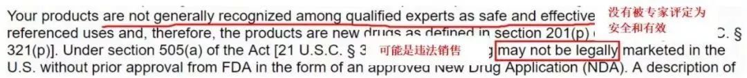 而FDA发出的警告信非常明确:此产品并没有被评定为安全有效,在FDA认可之前将其推向市场,涉嫌违法。