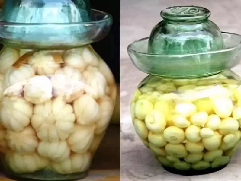 米醋具有降血压、降血脂、软化血管、祛色斑等功效,配上大蒜功效翻倍,还能抗衰老助消化。