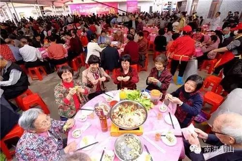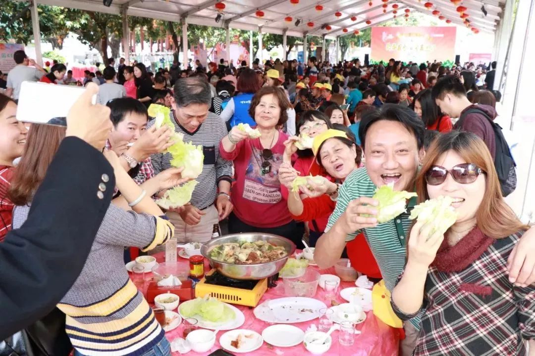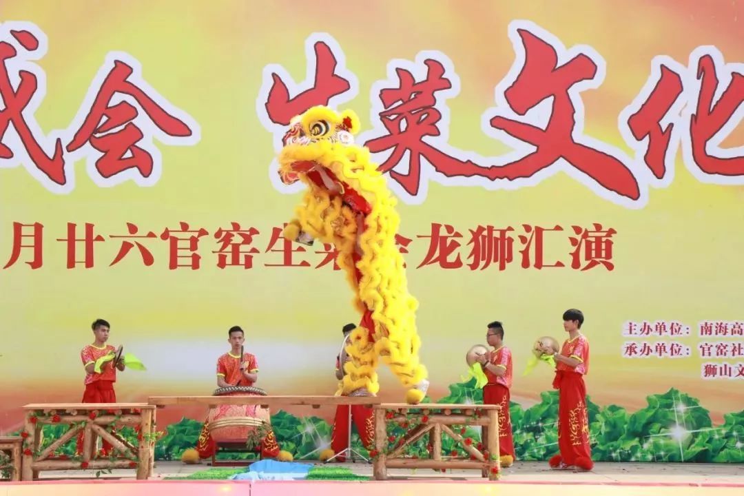 每年的狮山官窑生菜会不仅筵开数百席迎接各方来客,还有龙狮汇演,上下午各一场,锣鼓喧天、人声鼎沸,热闹程度堪比春节!