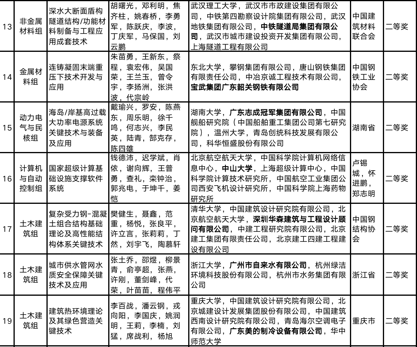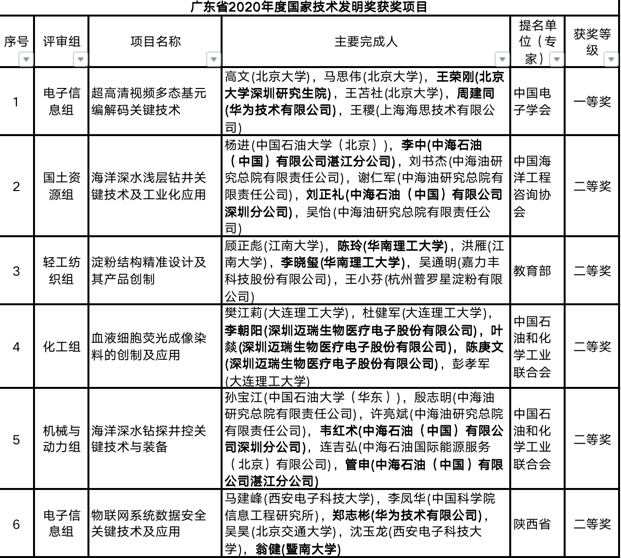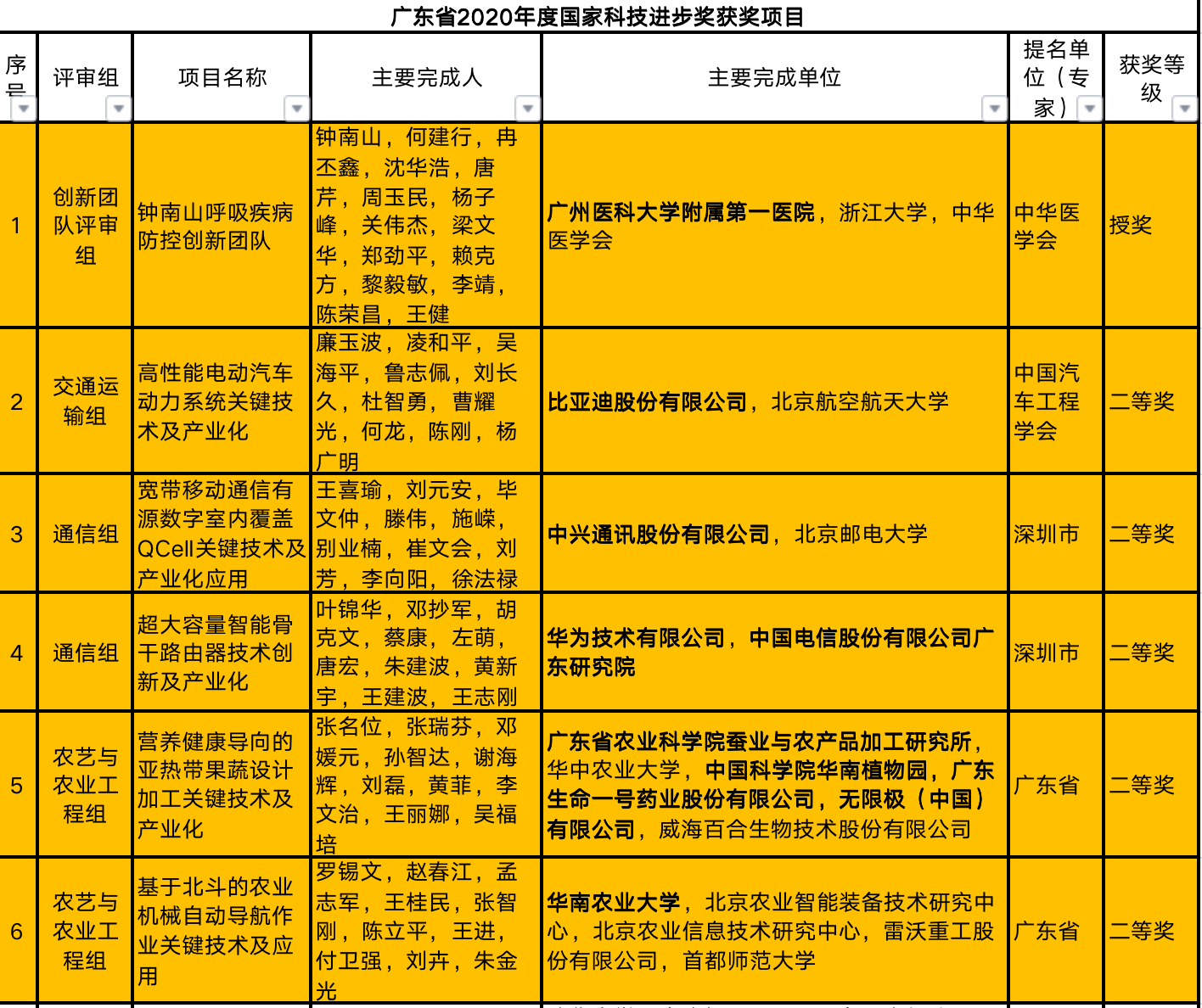 据统计,广东36项获奖的通用项目占全国获奖通用项目总数比例达17.1%,包括国家自然科学奖2项(二等奖2项)、国家技术发明奖6项(一等奖1项,二等奖5项)、国家科技进步奖28项(一等奖4项,二等奖24项)。