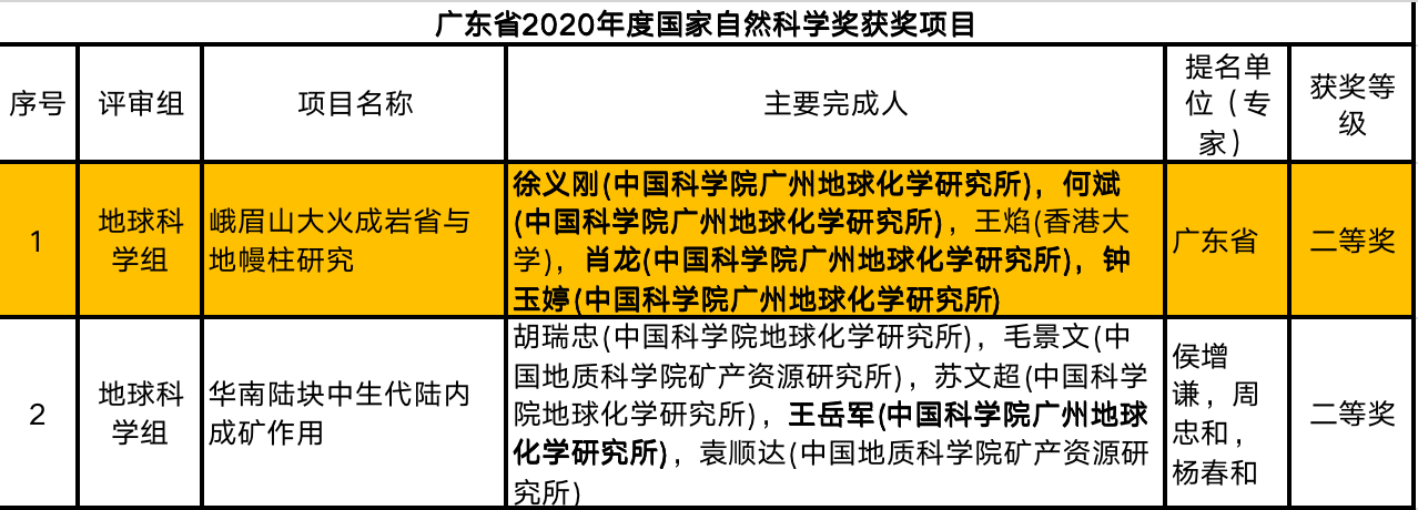 此外,在国家自然科学奖上,广东也有重大斩获,由中国科学院广州地球化学研究所徐义刚院士牵头完成的“峨眉山大火成岩省与地幔柱研究”荣获国家自然科学奖二等奖,显示了广东在地球化学基础研究领域取得的突出进步。