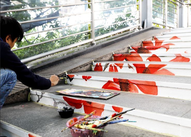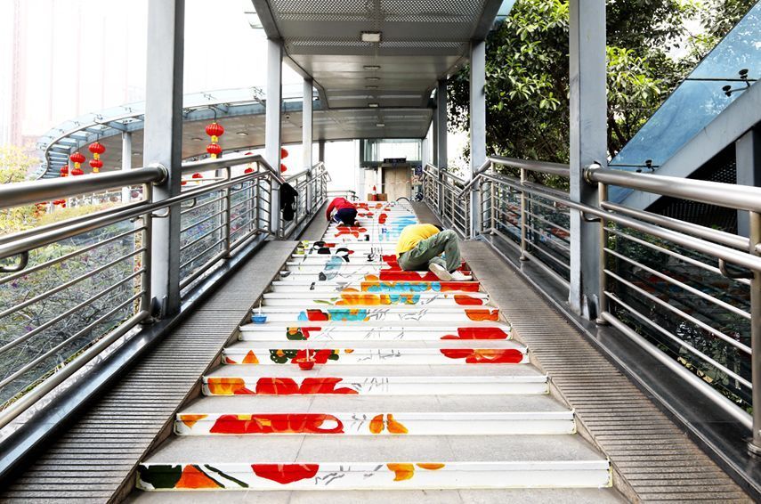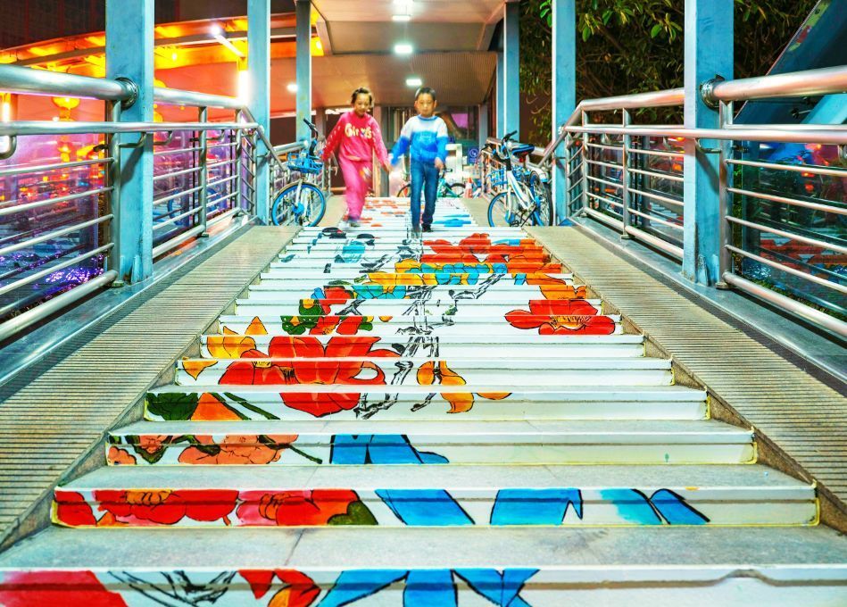 海三路天桥的创意涂鸦也成为一道风景