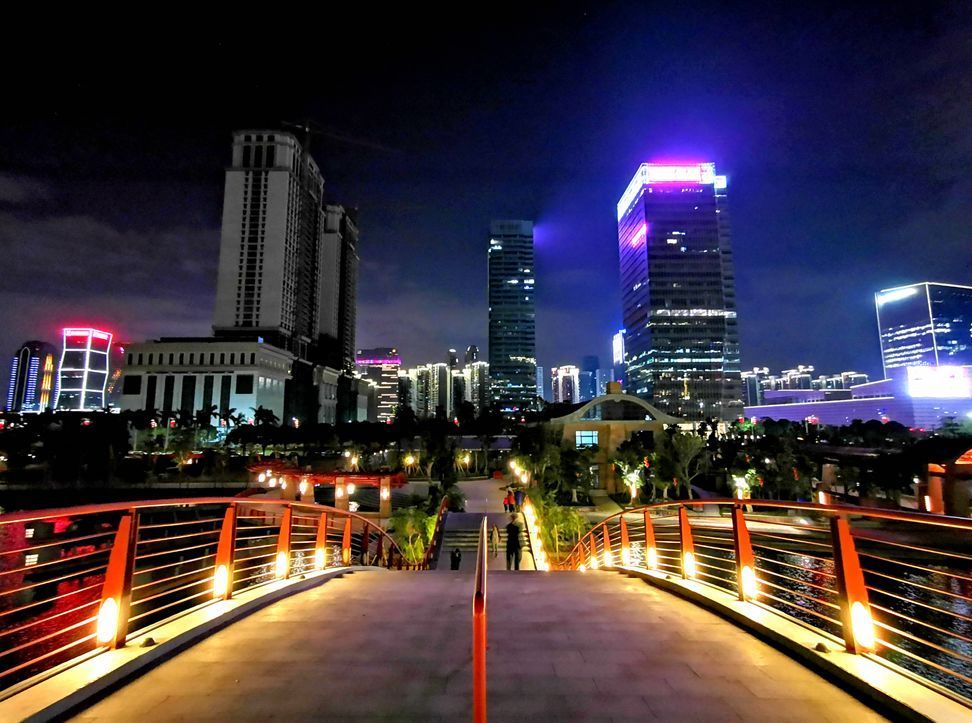 夜色中的千灯湖绚丽多彩