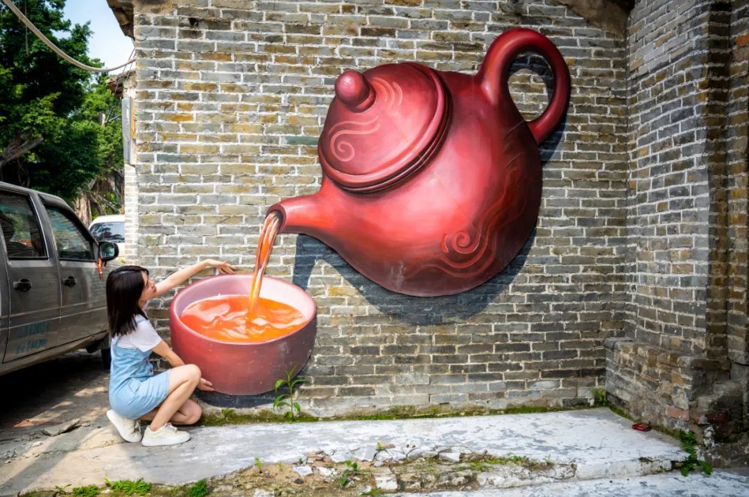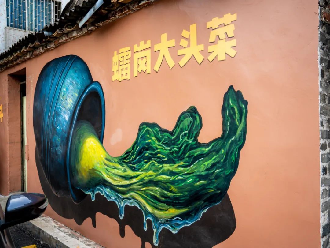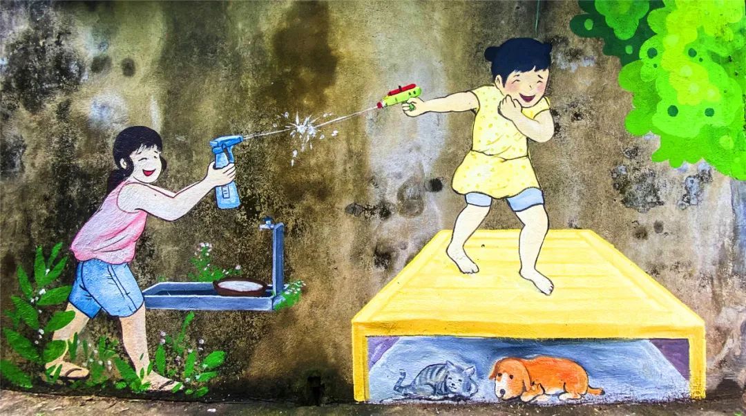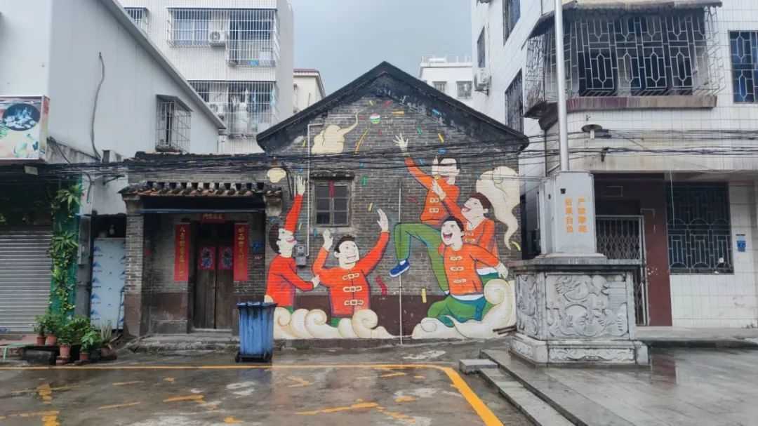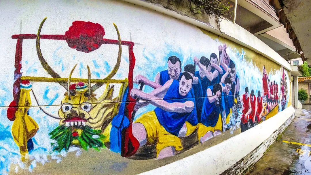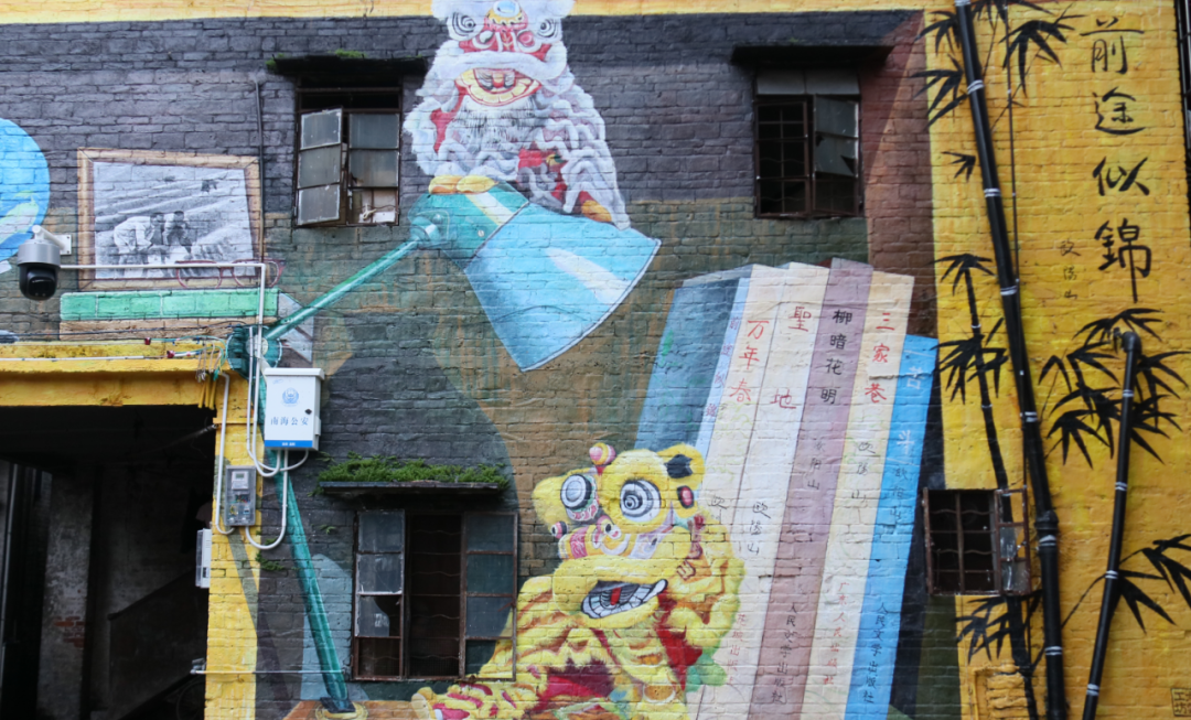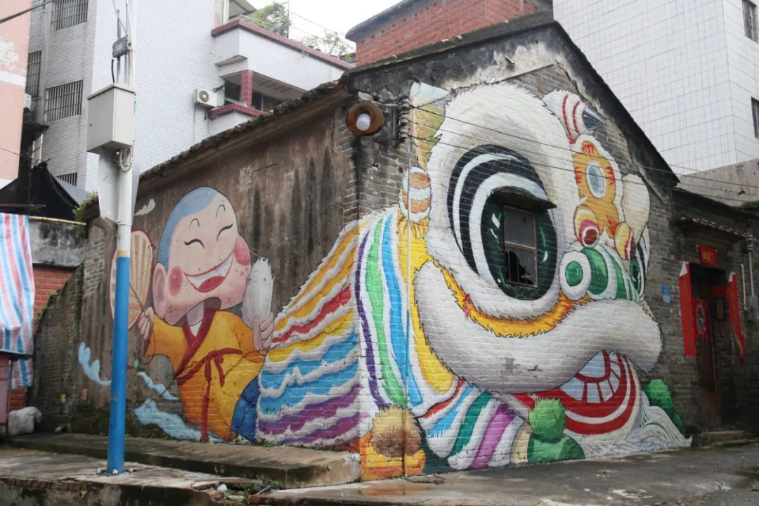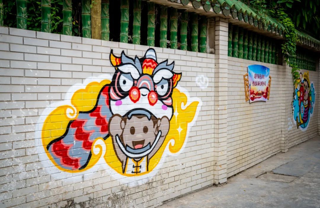 讲述乡村蝶变故事,视觉创意大开脑洞,舞狮、粤剧、诗句等跃然旧墙之上,变身文化传承的户外新课堂……