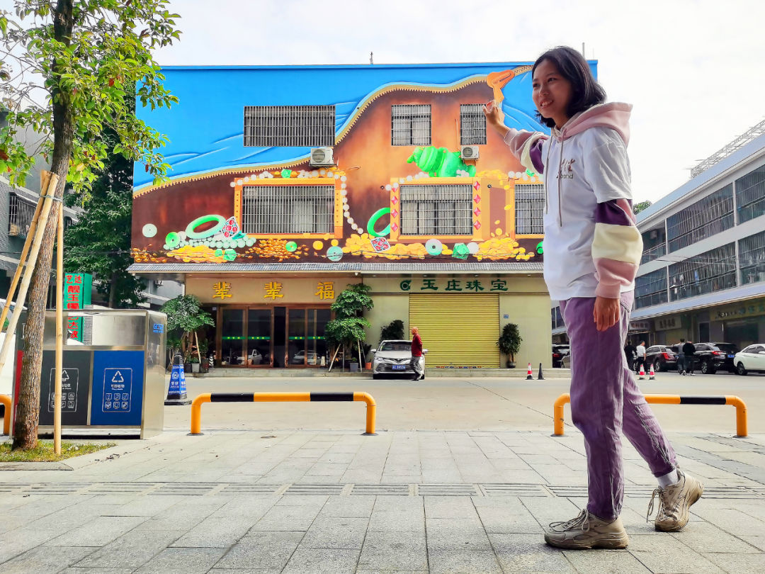 平洲玉器街:市民在创意涂鸦前“大开脑洞”拍照打卡