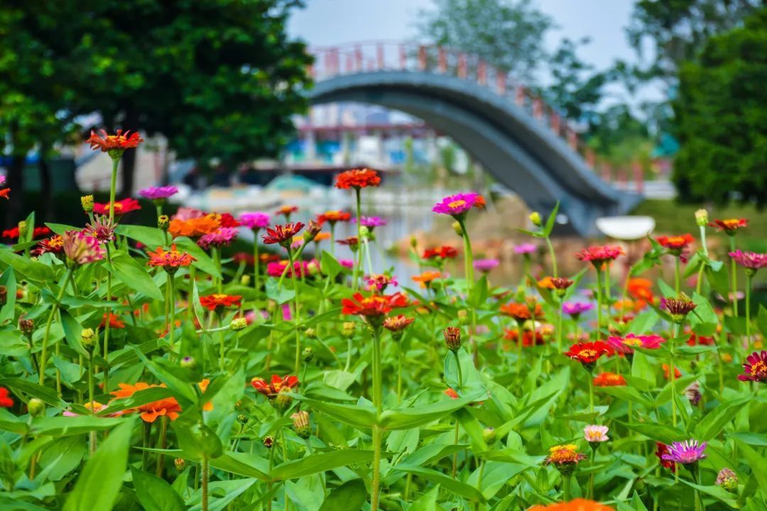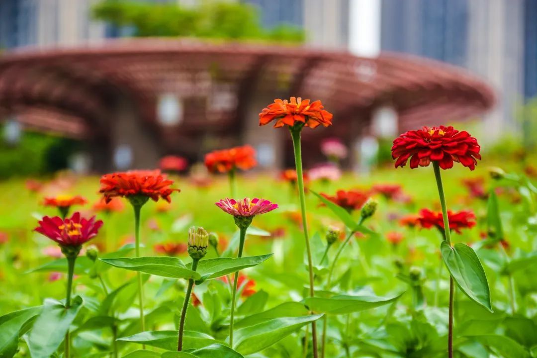 红的热烈、黄的娇嫩、紫的华丽,数种颜色的百日草带着初夏的明媚与热情,装点着桂城这个城市客厅。