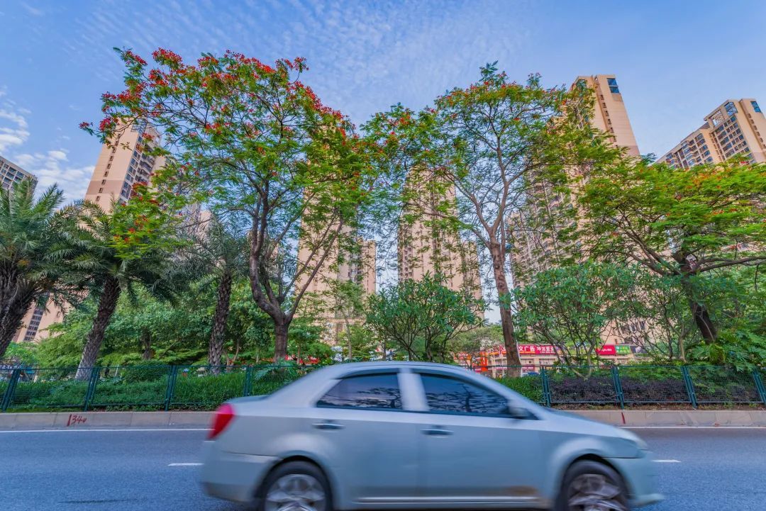 在桂城文翰湖片区,凤凰花带着独有的张扬和明艳鲜活了这座城市的色彩,每一眼的定格仿如一副油画。