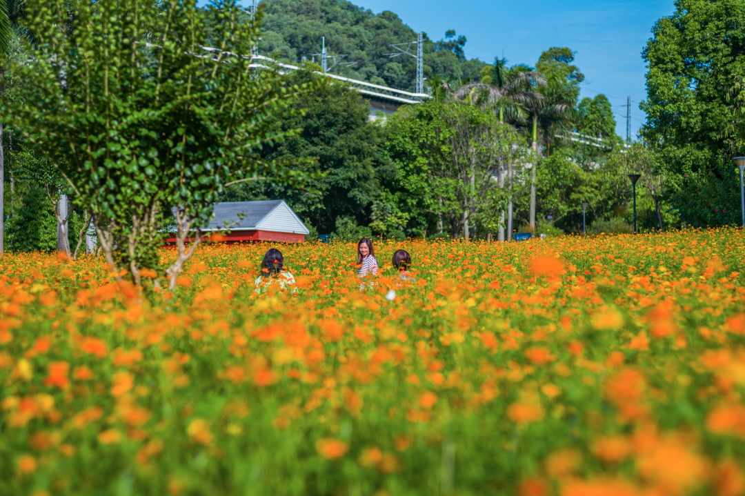 鸟鸣风声相伴下,游客纷纷驻足与花海合影,流连在清香与美景之中,偶尔一垂首。在桂城,与“幸福”不期而遇!