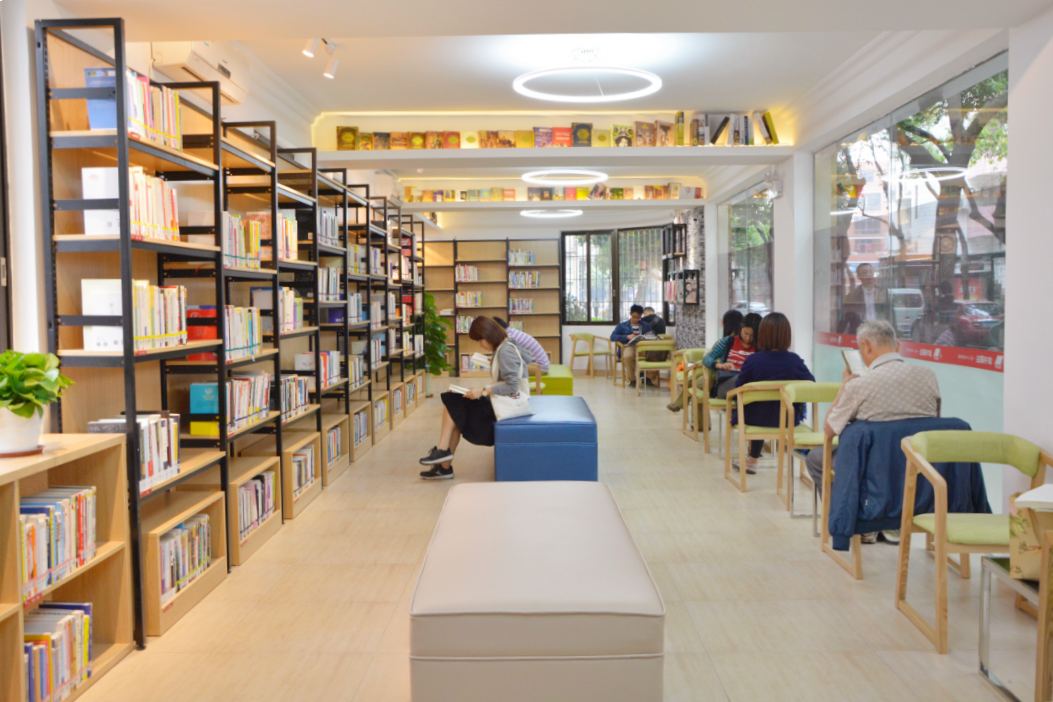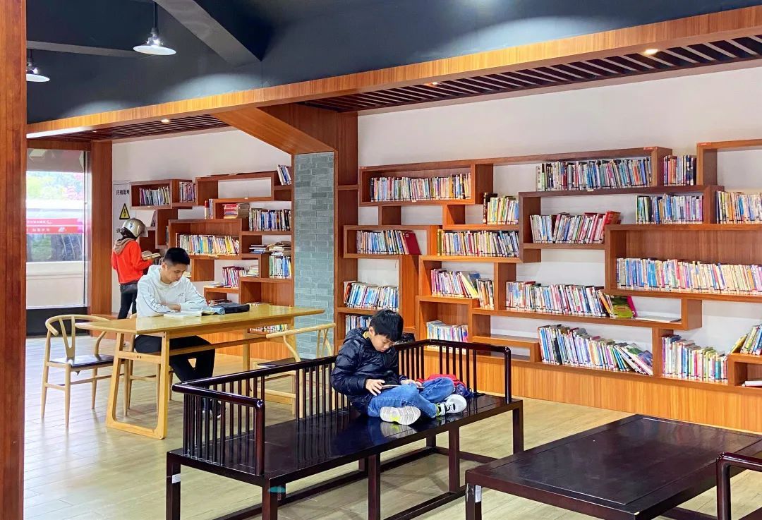 驿站装潢清雅别致,设置阅读坐席约50个,为周边居民提供了一个舒适幽美的公共阅读空间。